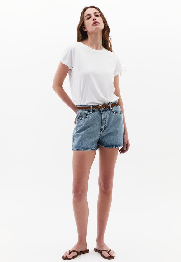High?Waist Denim Shorts-LIGHT BLUE DENIM-42