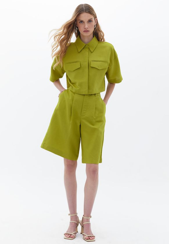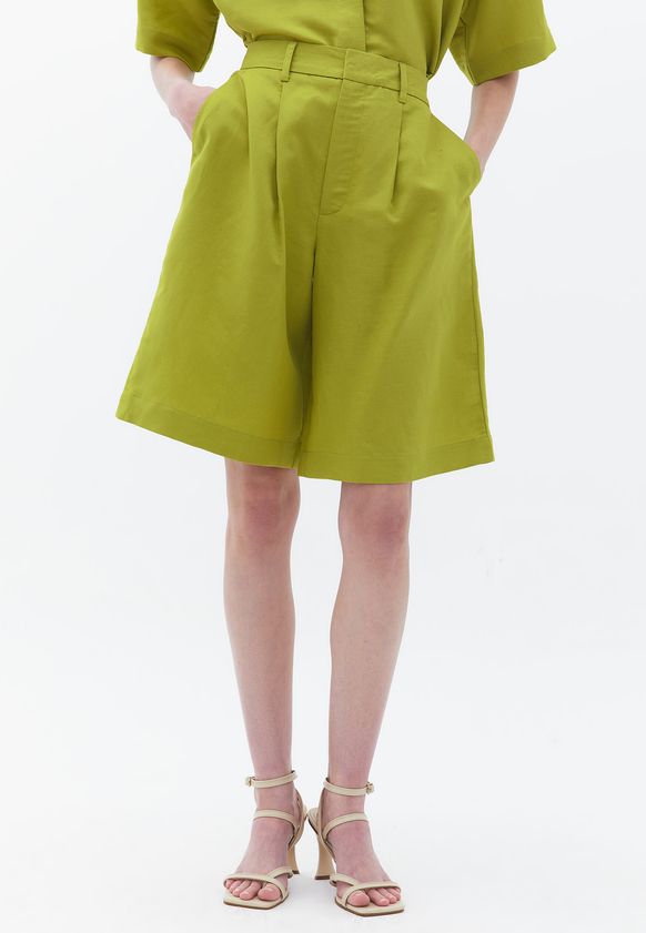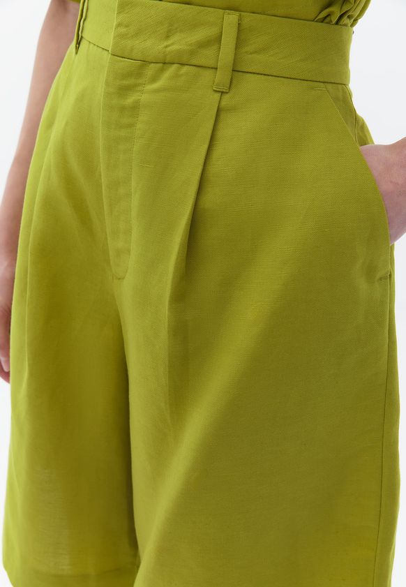 Linen Blended High Rise Shorts-GOLDEN LIME-40