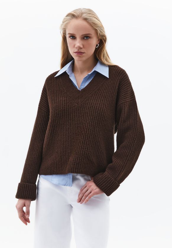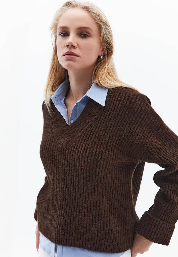 Wool Blend V-Neck Sweater OX-APYUNSEL