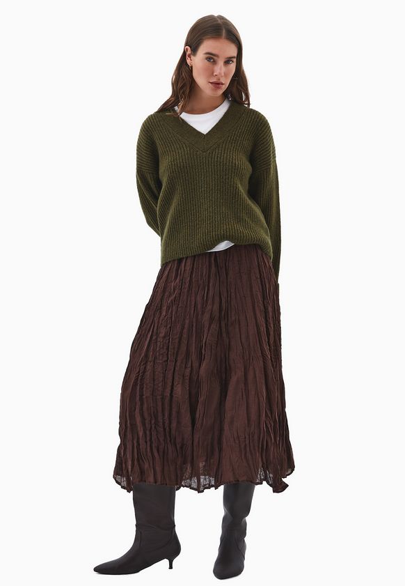 Linen Blend High Waist Skirt OX-TEKZUNTEK
